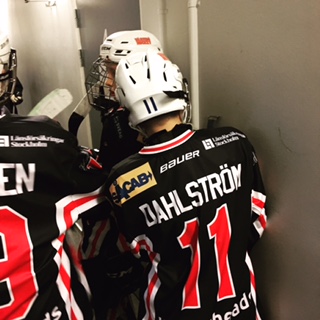 Då kom faktiskt en av tränarna (omtänksamme Tobbe) fram till mig och sa att jag fick låna hans klubba samt hjälm om jag fortfarande ville vara med på spelet. Jag var nämligen ingen riktig materialspelare. Hade en barnklubba (som var väldigt kort) samt min egen skidhjälm istället för hockeyhjälm… (Nu i efterhand undrar jag hur jag tänkte).
