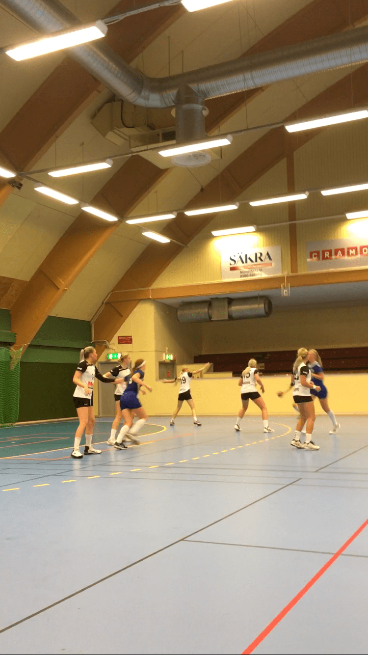 Ställningen var 18-18 när det återstod knappt 7 minuter. Skövde tar timeout. Olyckligtvis för Gurra, så får Skövde utdelning efter en hel del passningar, med armen sträckt från våra svartvita rättskipare. Skickligt av Skövde.